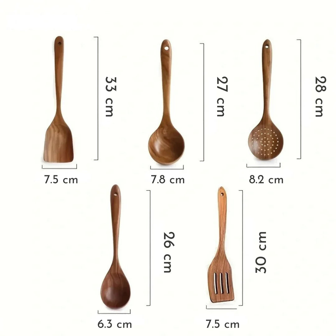Med sitt skandinaviske design er våre redskaper laget av førsteklasses naturlig teak og behandlet med olivenolje for å sikre langvarig holdbarhet